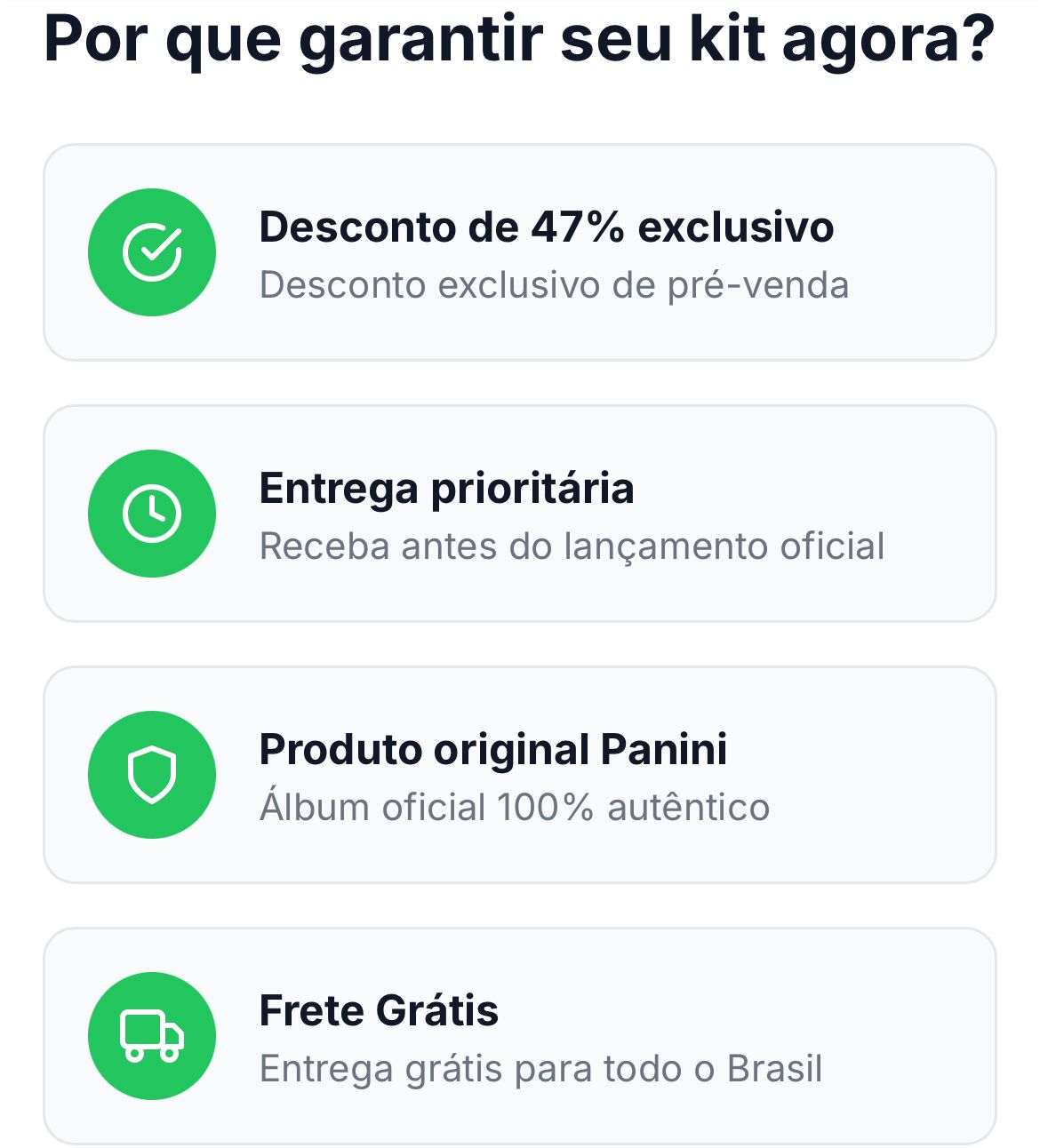 Sim! Trabalhamos diretamente com distribuidores oficiais. Todos os produtos são 100% originais Panini, lacrados de fábrica e com selo de autenticidade.